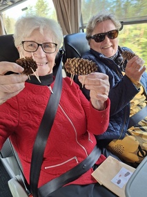 Matkan aluksi kaikille jaettiin puuhapussit jotka sisälsivät materiaalit käpylehmien tekoon ja matka kuluikin joutuisasti, lehmiä valmistui ison navetan verran. Löytyipä joukosta yksi joka sai tehdä käpylehmän ensimmäistä kertaa elämässään.
