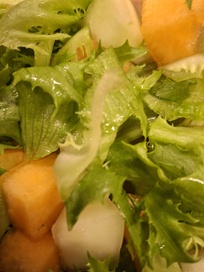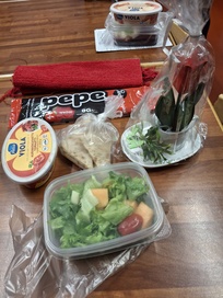 Pääruoka Lohikiusaus, salaattia, rieskaa ja levitteitä
