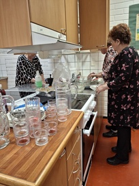 Jatulin opetuskeittössä ihana puheensorina ja astioiden kilinä.